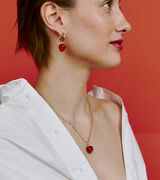 Glass bead hand-made by our artisans, and 18k gold plated stainless steel 12mm huggie hoop.