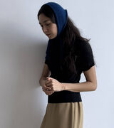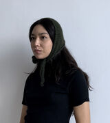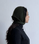 Handknitted headscarf in merino wool and mohair with an attached handmade glasspearl.