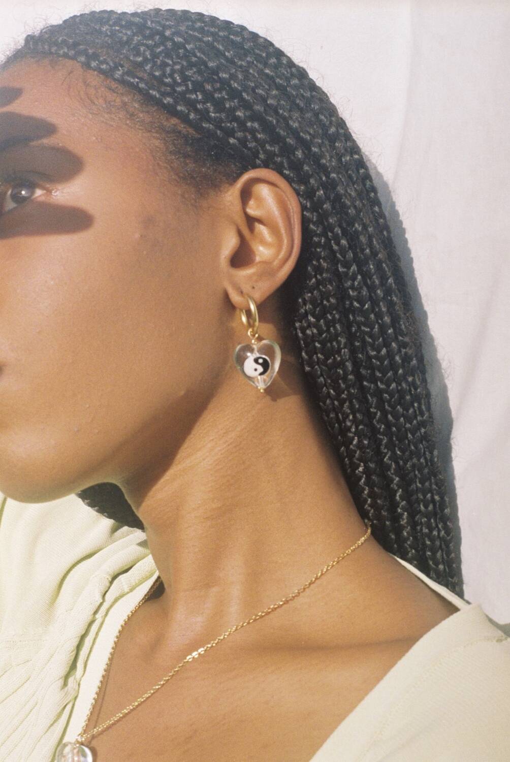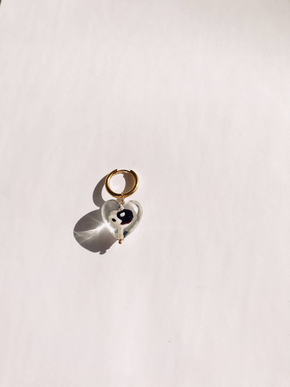 Heart shaped bead is 100% handmade in glass. You can see through it, and find a glass yin yang caringly placed in the centre.