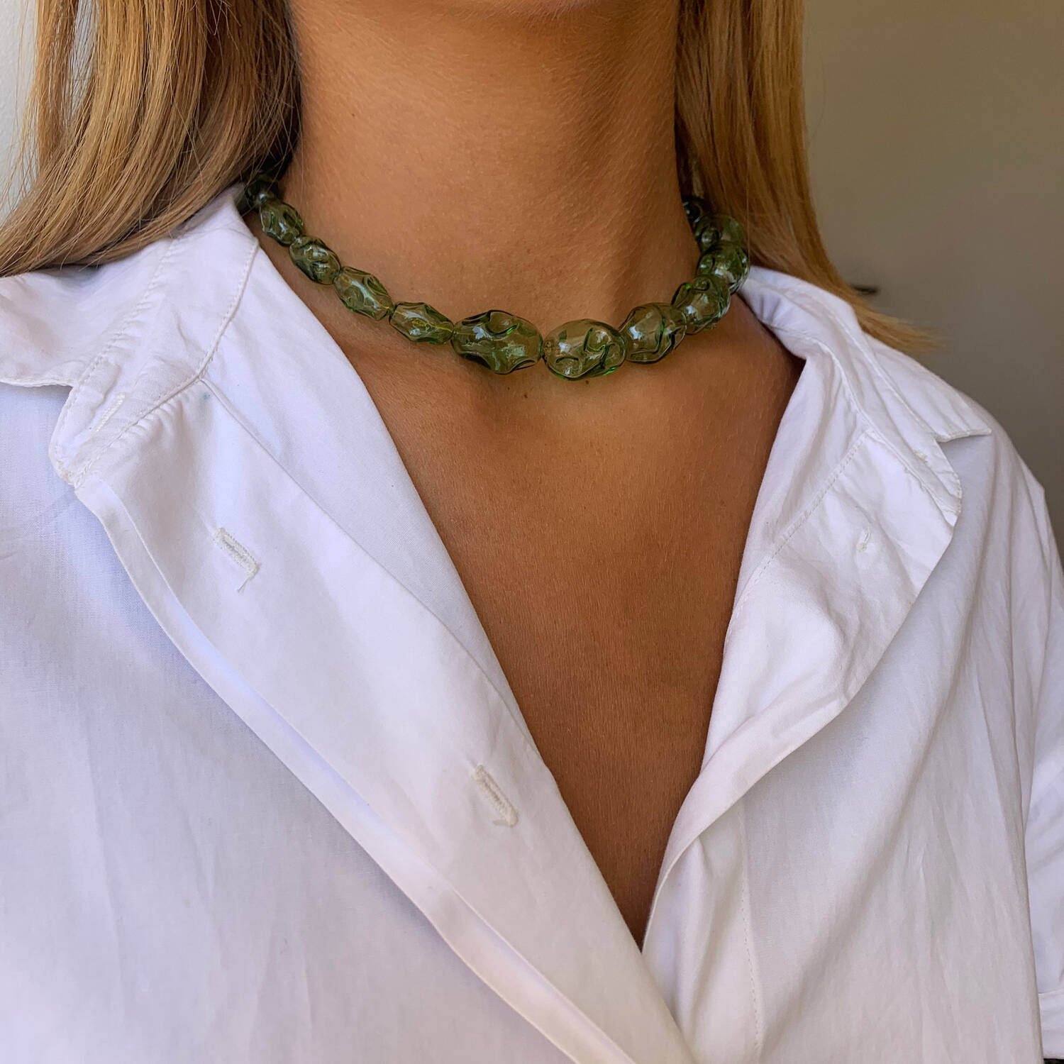 Part of the timeless selection: a delicate and elegant necklace made of blown glass and gold vermeil details.
