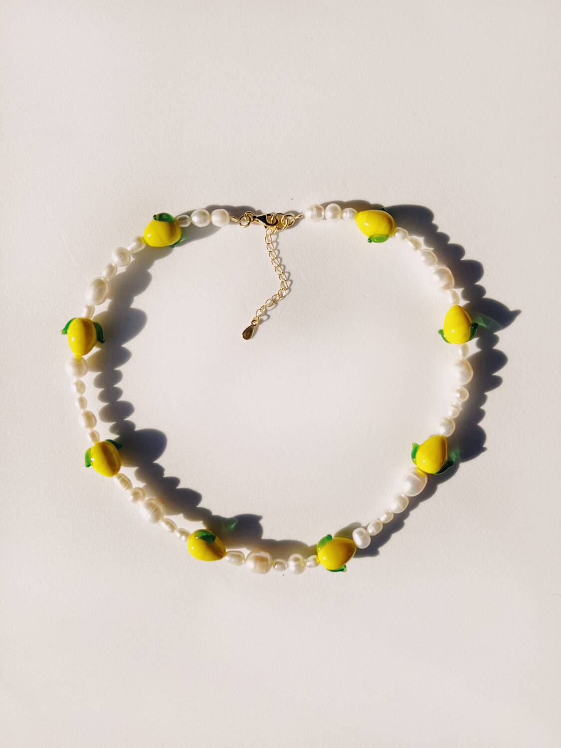 Lemons Beaded Necklace: 41cm + 5cm adjustable chain approx.