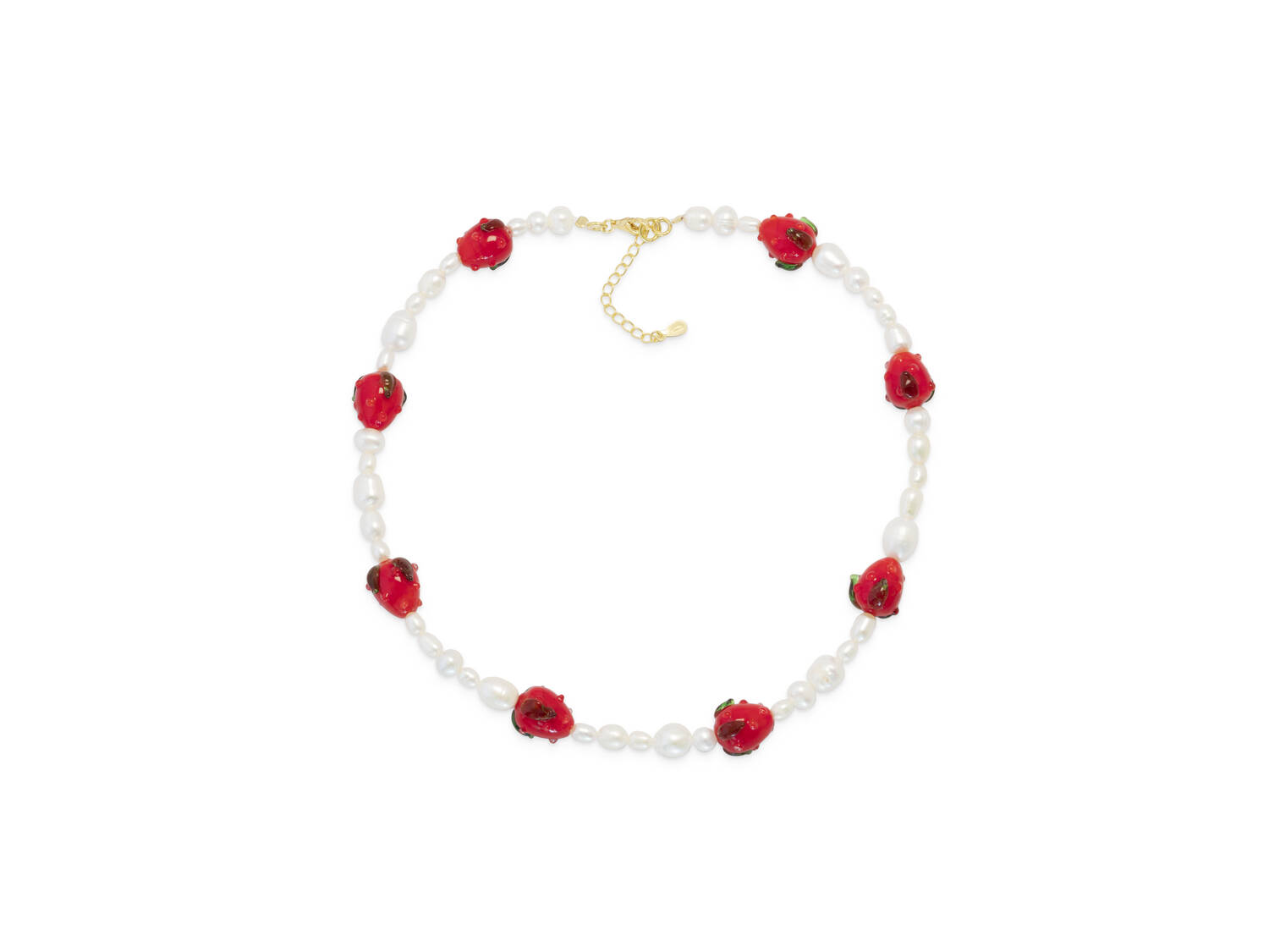 Strawberry Beaded Necklace: 41cm + 5cm adjustable chain approx.