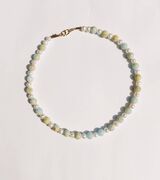 A fresh creation made with Reconstituited stone, freshwater pearls and vermeil gold 14k. With a 41 cm length.