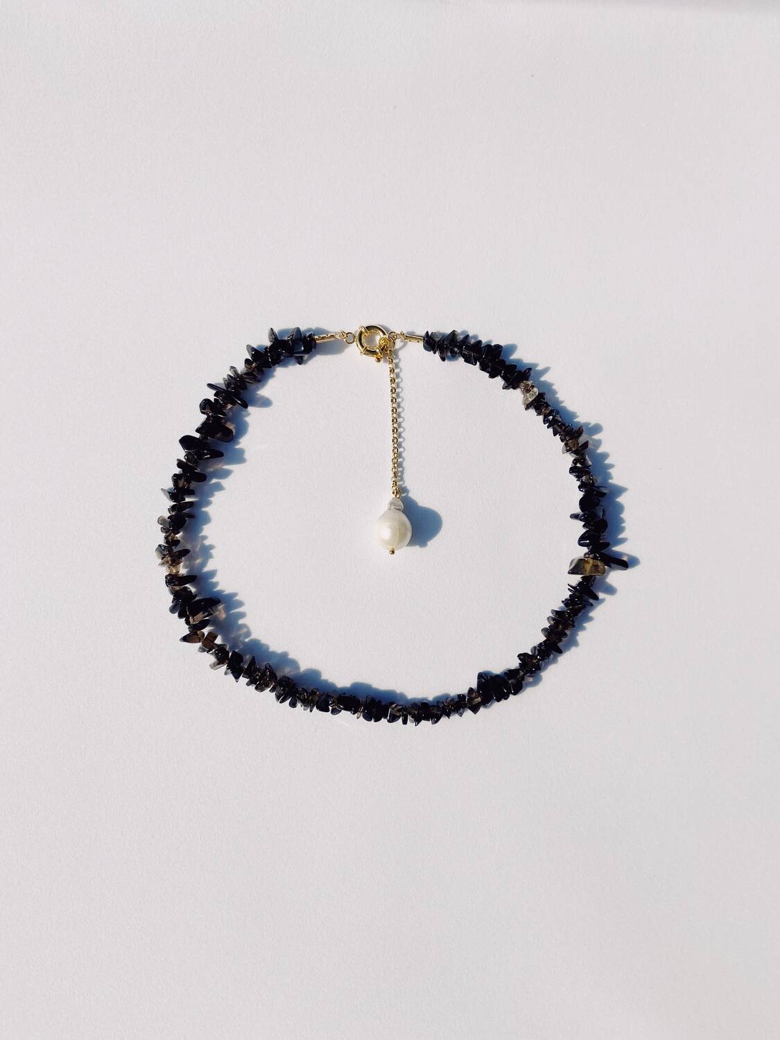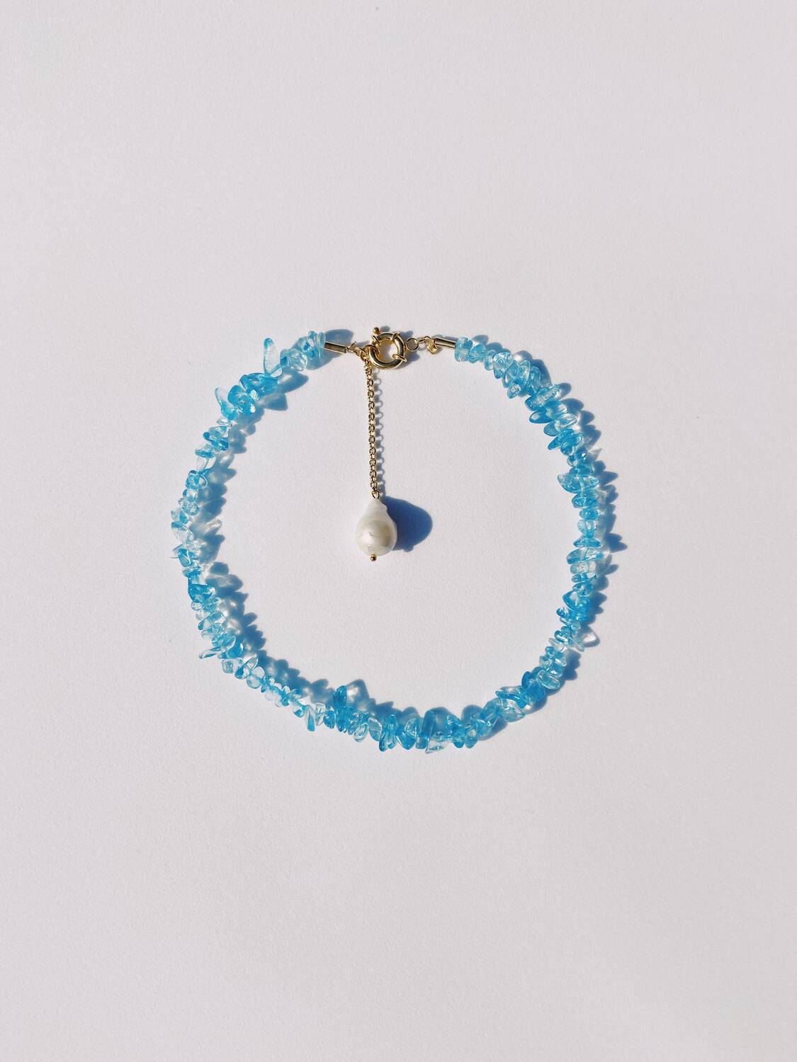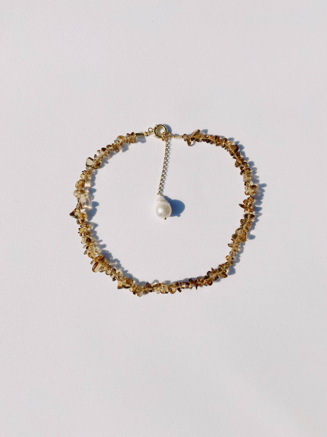 Crystal chips in translucid shades, 20mm Baroque Fresh water Pearl and Vermeil gold.