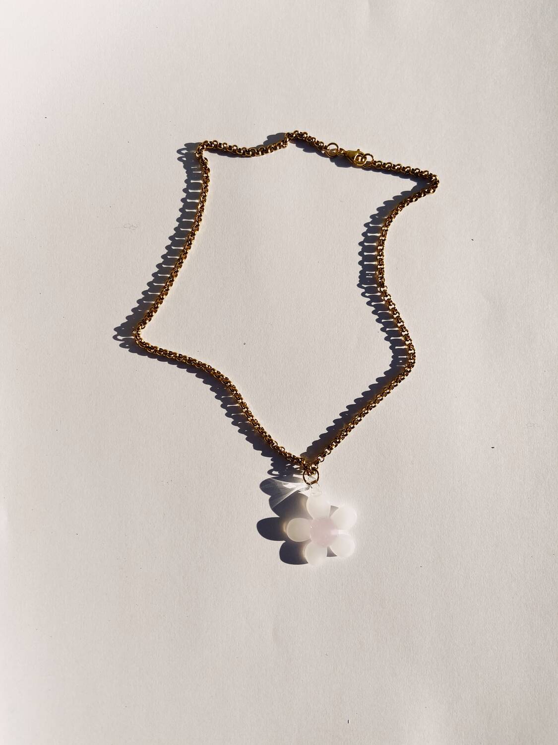 Lampwork charm. Metal gold-plated stainless steel chunky chain.